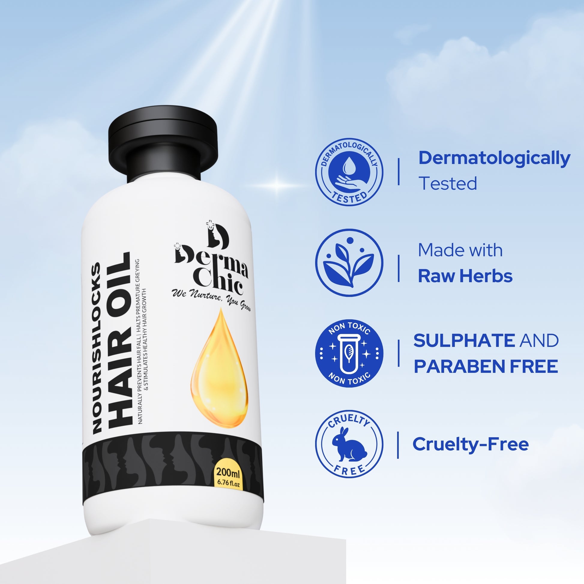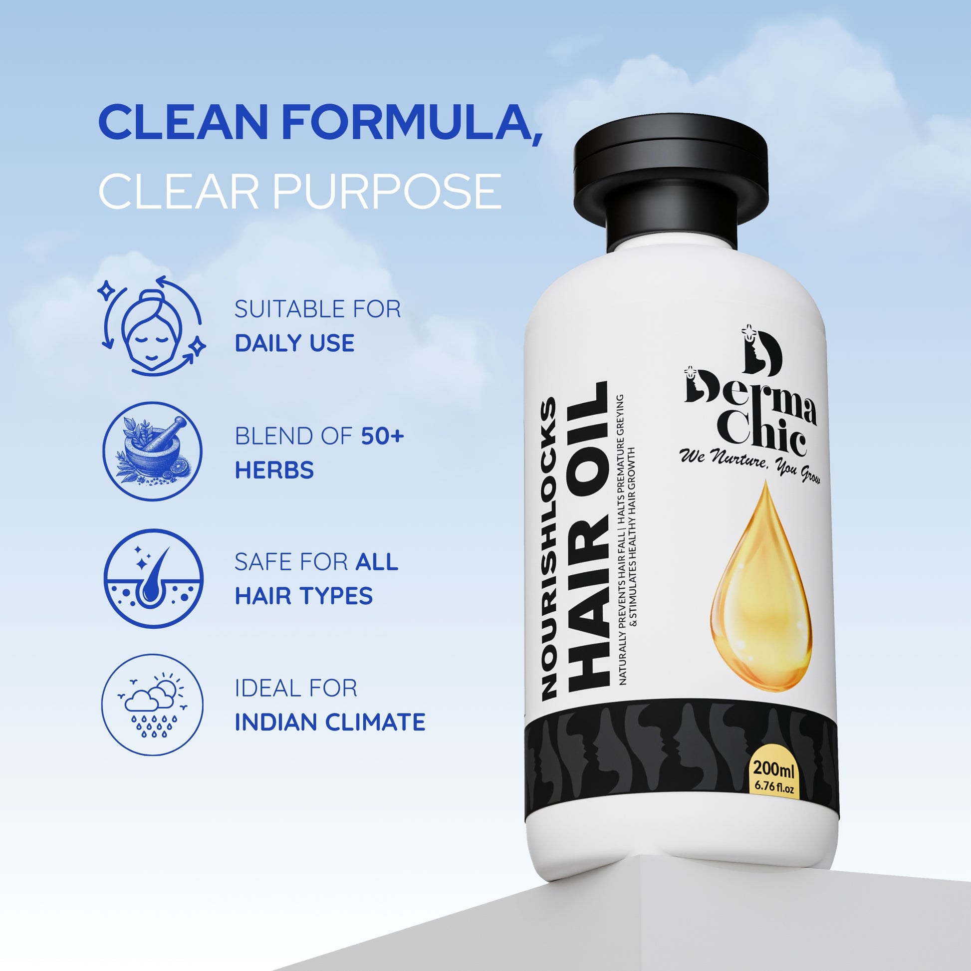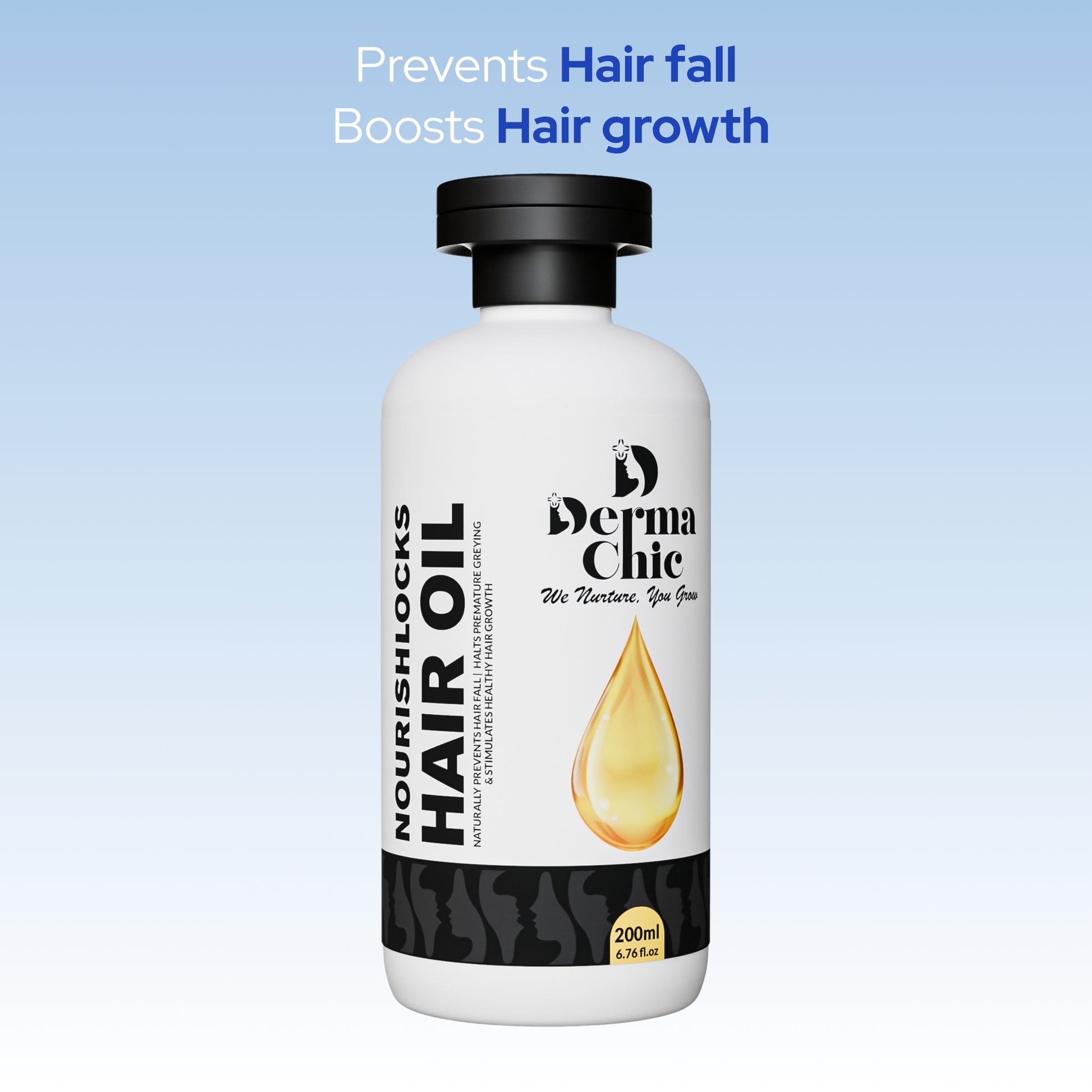 DermaChic NourishLocks Hair Oil – 50+ Herbal Blend for Hair Growth & Stronger Roots (200ml)