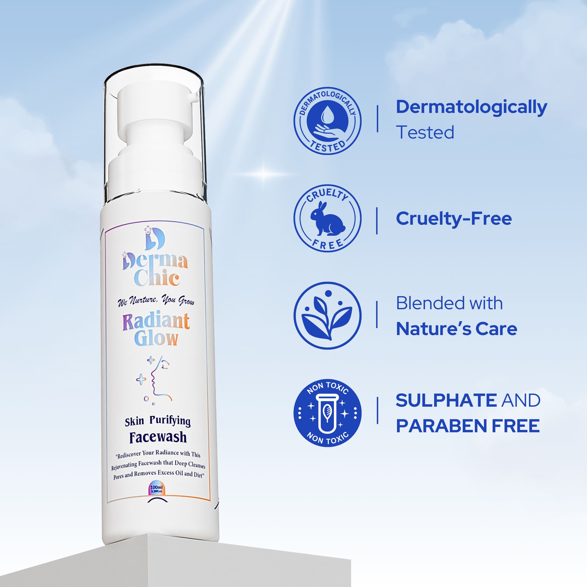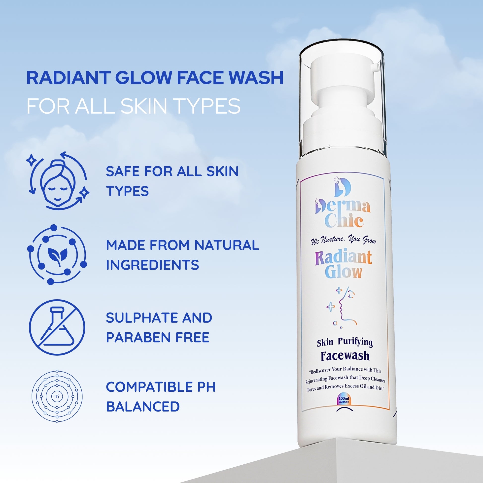 DermaChic Radiant Glow Facewash – Vitamin C & Aloe Purifier for Clear, Bright Skin & Acne-free (100ml)