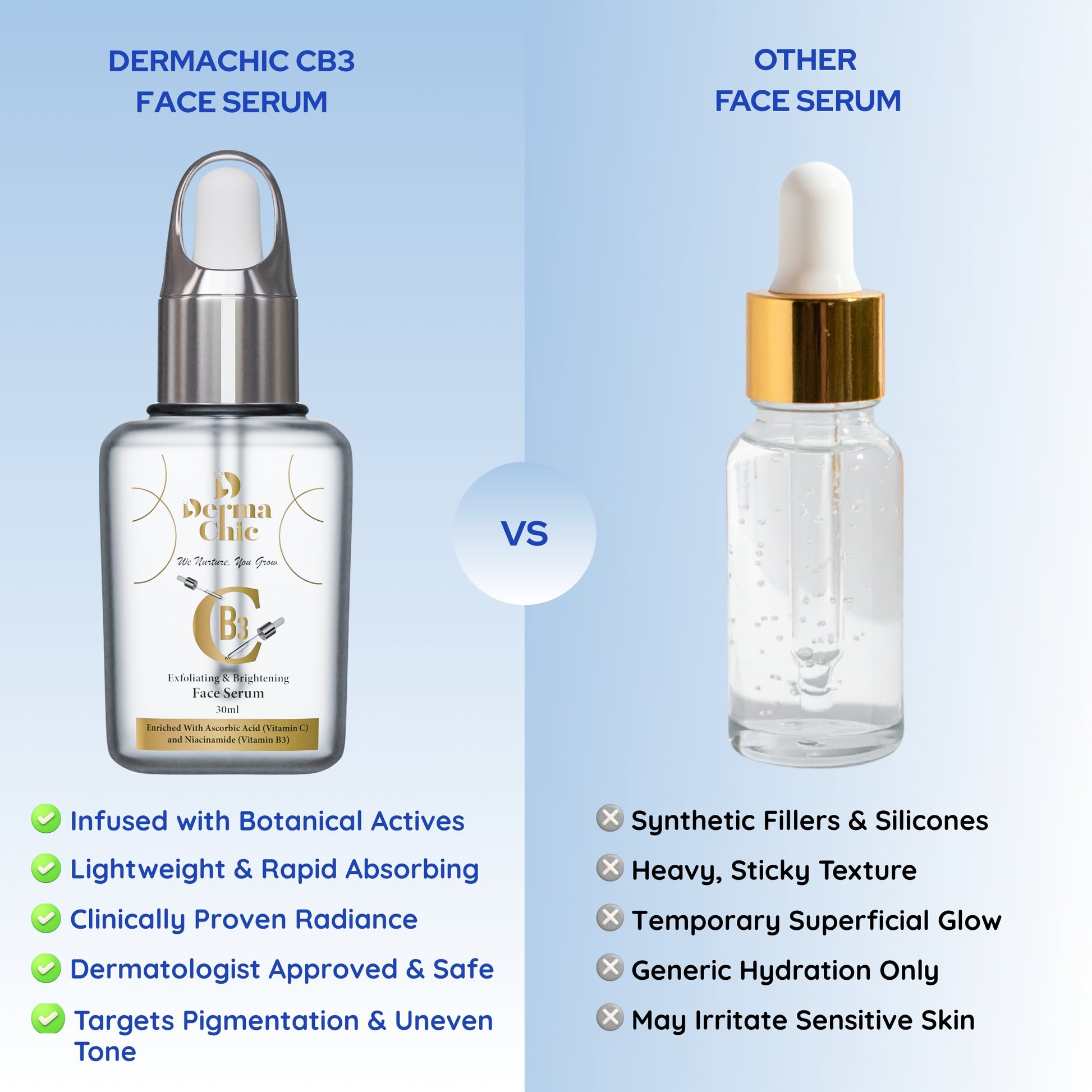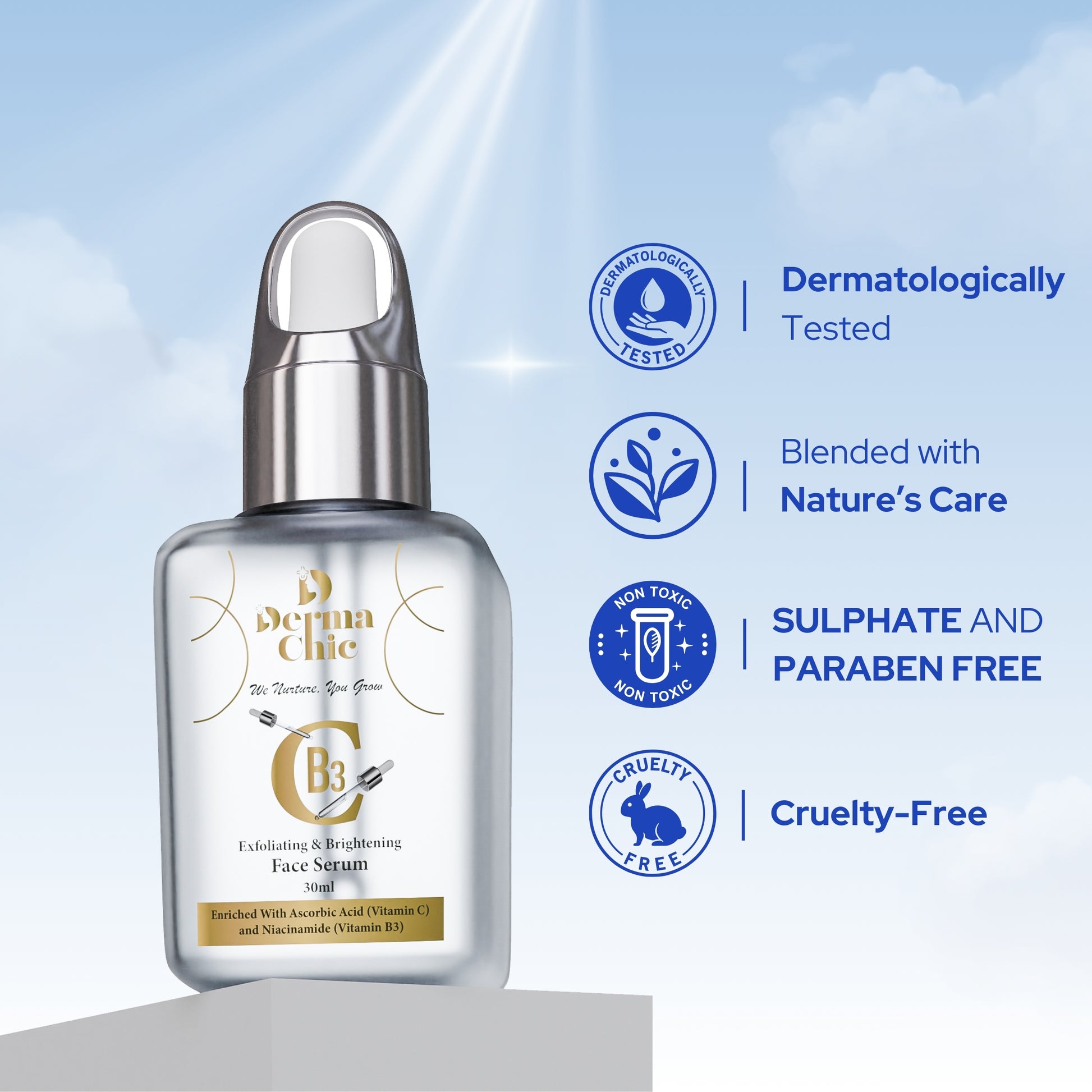 DermaChic CB3 Face Serum – Vitamin C, Niacinamide & AHA for Brighter, Even Skin Tone (30ml)