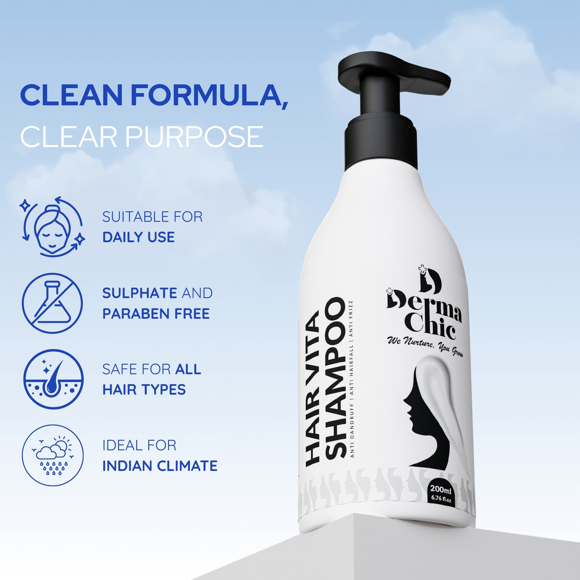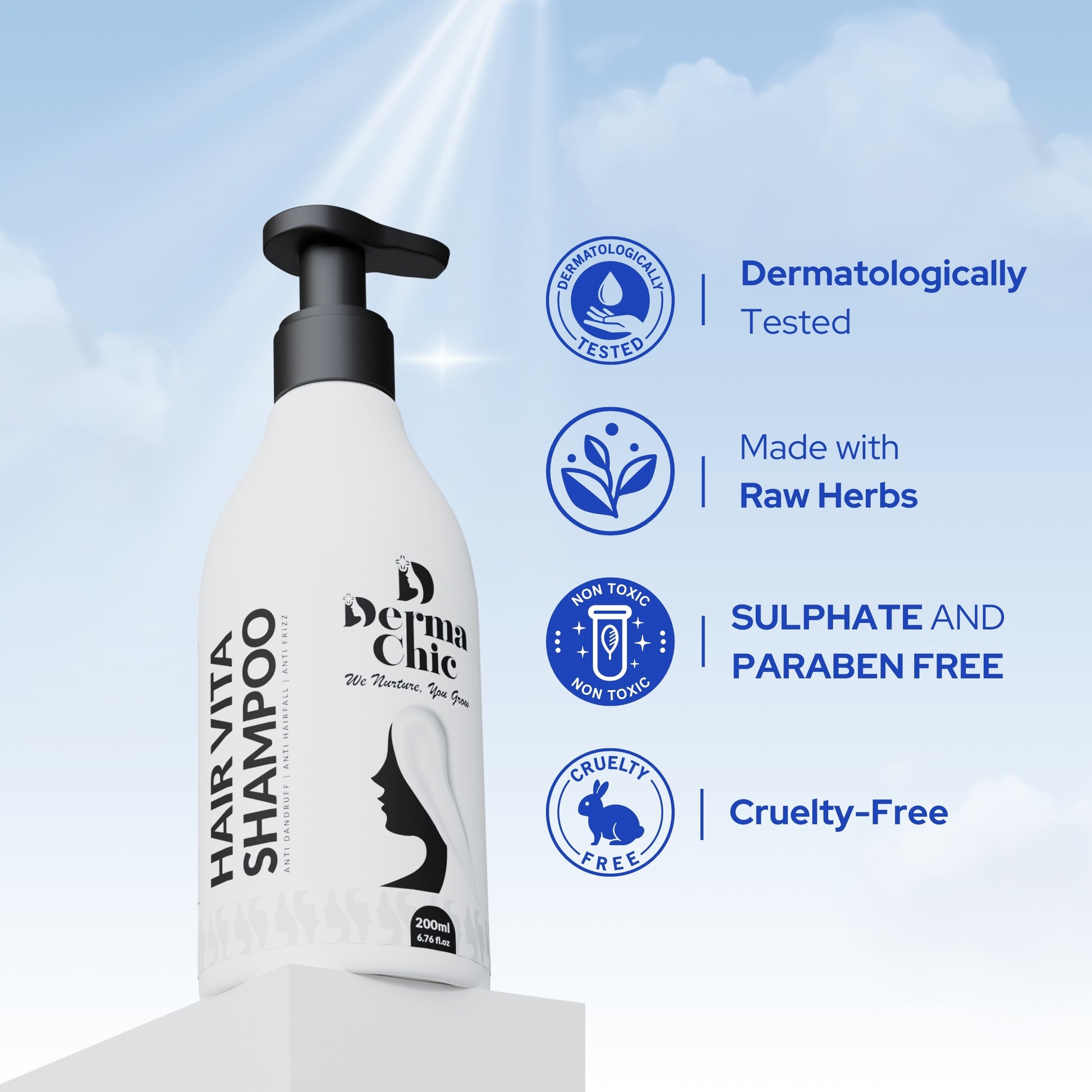 DermaChic Hair Vita Shampoo – Anti Hairfall & Dandruff Control with Biotin, Caffeine & Rosemary (200ml)