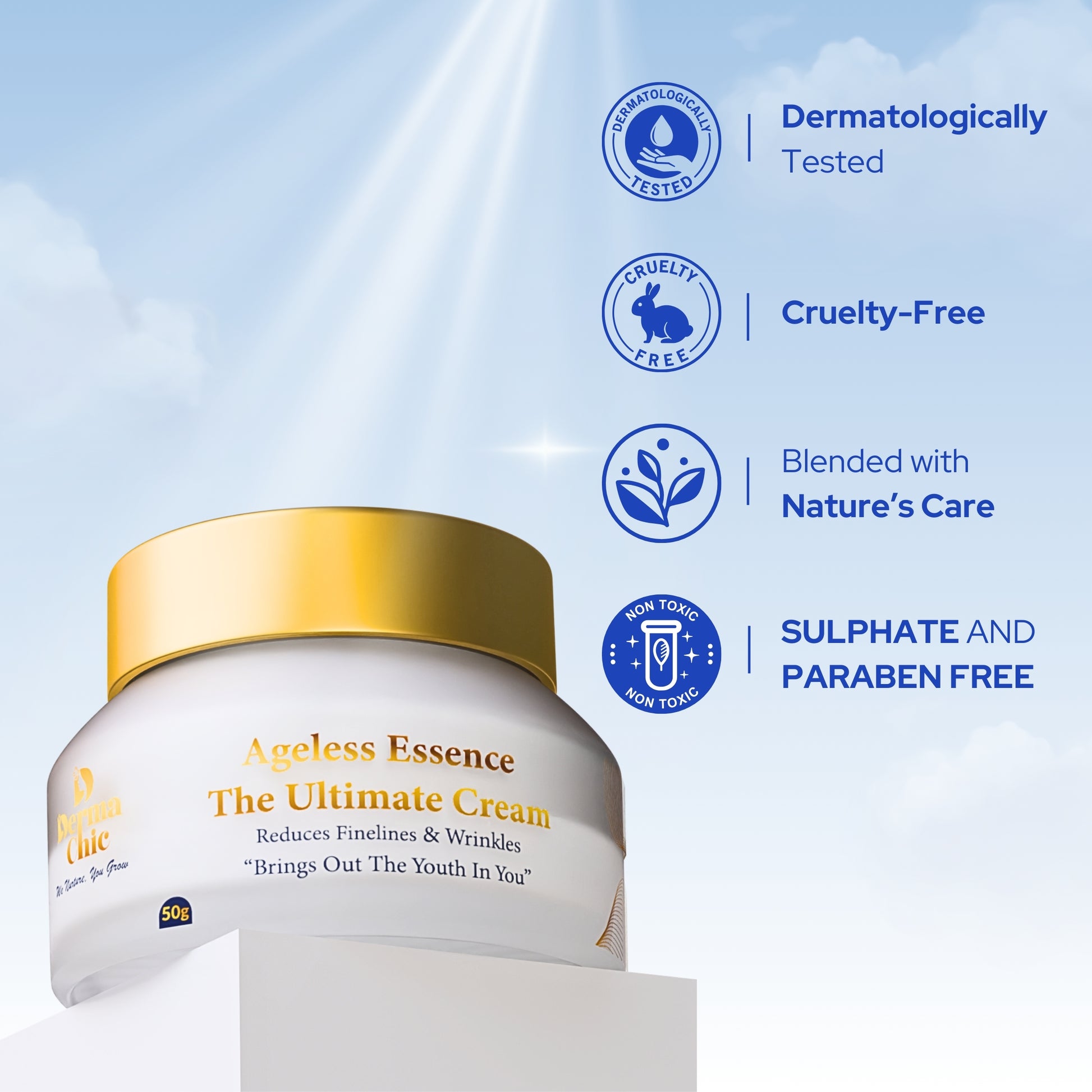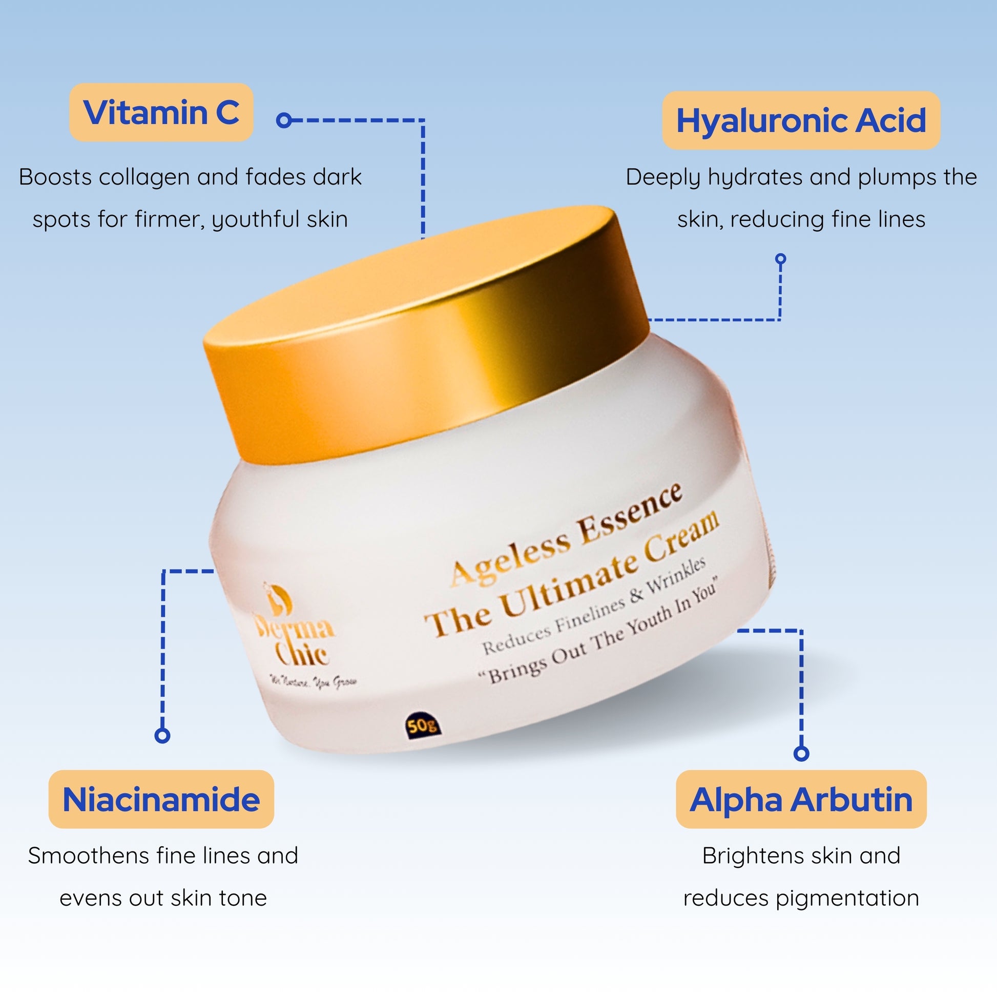 DermaChic Ageless Essence Cream – Retinol & Hyaluronic Moisturizer for Youthful Glow (50g)
