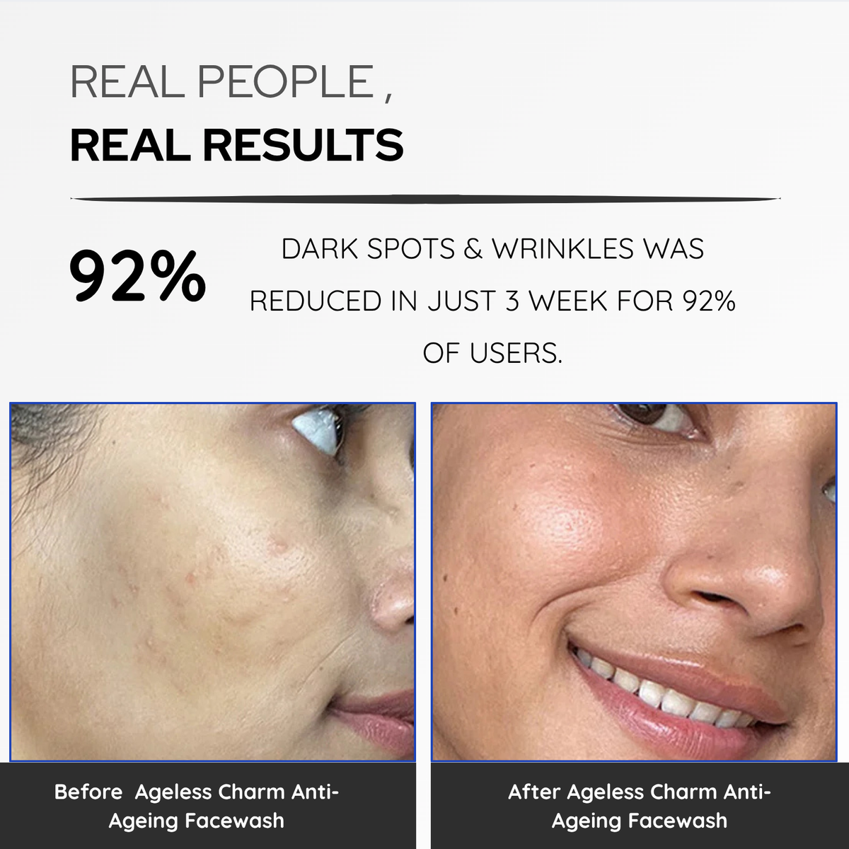 Based on 12-week user study with 107 verified customers using Ageless Glow FaceWash as their PM cleanser daily.