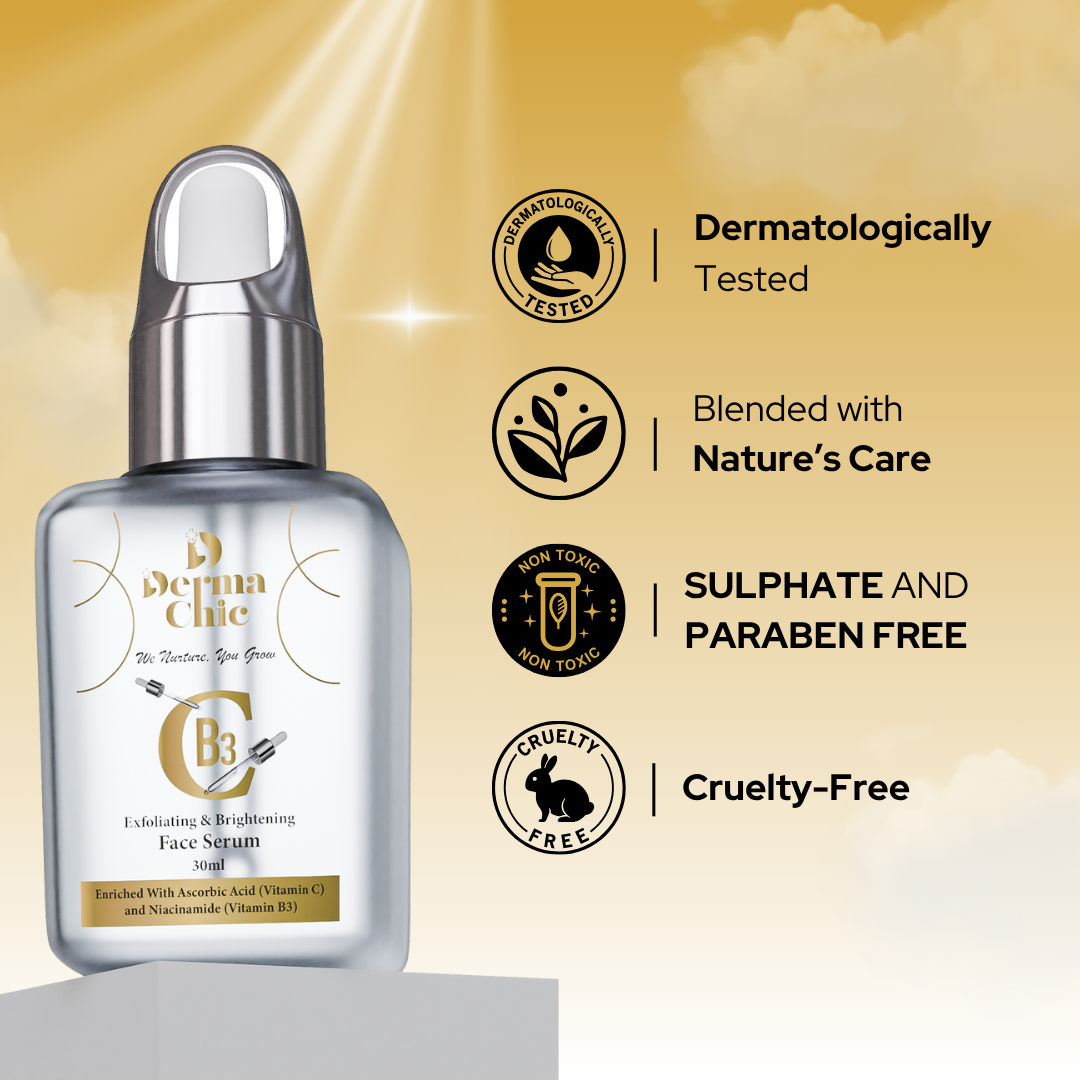 DermaChic CB3 Exfoliating & Brightening Face Serum - Vitamin C & Niacinamide Infused (30ml)