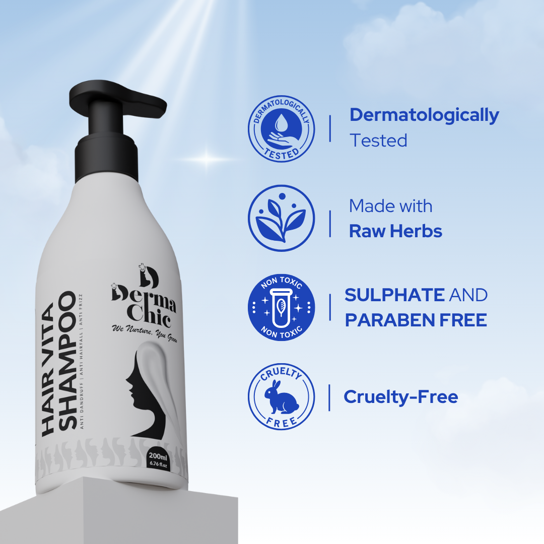 DermaChic Hair Vita Shampoo - Anti Dandruff | Anti Hairfall | Anti Frizz (200ml)
